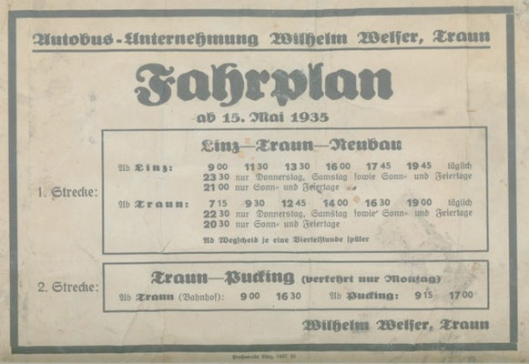 Die Wilhelm Welser Verkehrsbetriebe wurden 1935 von Wilhelm Welser sen. gegründet. Zunächst mit einem Buslinienverkehr zwischen Traun und Linz sowie einem kleinen Ausflugsverkehr gestartet, entwickelte sich das junge Unternehmen schnell weiter.